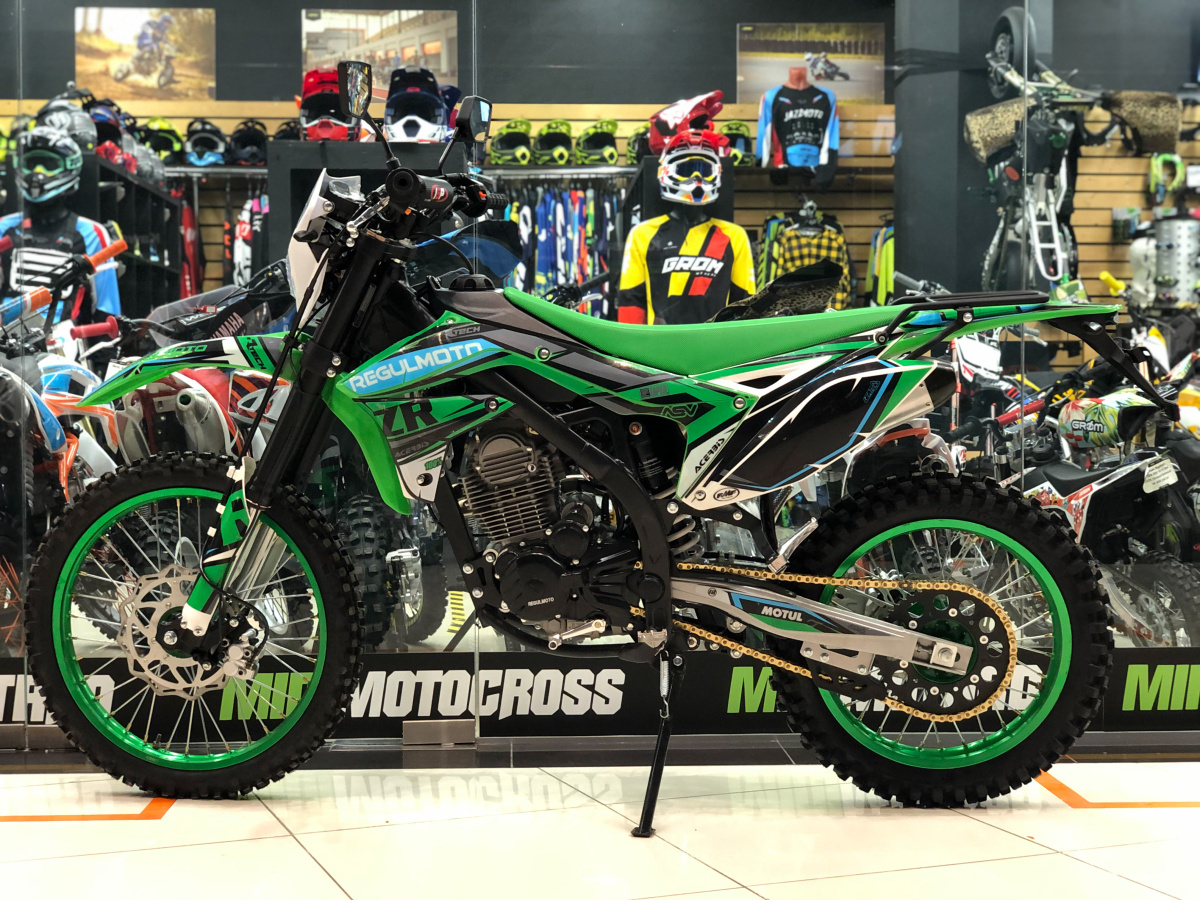 Многофункциональный эндуро мотоцикл Regulmoto ZR 250, подойдет для покорения бездорожья и спокойных поездок по асфальту. Идет сразу с ПТС поэтому вы легко поставите на учет и сможете ездить в любых направлениях, на этом замечательном покорители дорог. В основе мотоцикла крепкая стальная рама, а колеса 21 спереди и 18 сзади. Для облегчения веса они алюминиевые с буксаторами и усиленными спицами. Еще один весомый плюс – мотор. Выбран Zongshen SZ172FMM-3A в паре с карбюратором Nibbi PE28, одно из лучших сочетаний по надежности и неприхотливости. Объем в 249,9 см3 с 21 лошадиной силой (18 Hm крутящего момента) и воздушное охлаждение. Работу амортизаторов можно настроить на сжатие и отбой при помощи специальной регулировки. У эндуро мотоцикла есть еще ряд плюсов: электронная приборная панель, электростартер, цепь с сальниками, защита рук - выполненная из алюминия, фара и полный комплект свето