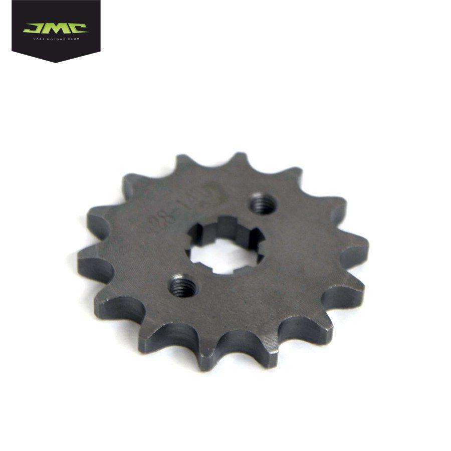 Звезда ведущая под 428 цепь. Подходит на валы двигателей питбайков и мотоциклов c диаметром вала ведущей звезды 20,00 мм. Количество отверстий под крепление - 2, с растоянием между центрами крепежных отверстий - 34,00 мм. Число зубьев звезды - 14. Внешний диаметр звезды 61,00 мм. Толщина звезды - 7,00 мм. Материал - сталь.